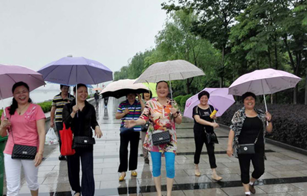 早上9點(diǎn),160余名麗汽退休職工齊聚麗水“外灘”防洪堤,雖然天空淅淅瀝瀝的下著雨,但阻擋不了大家的腳步。老年朋友撐著傘,一路歡聲笑語(yǔ),精神抖擻地沿著防洪堤景觀帶走了半個(gè)多小時(shí),隨后還參觀了麗水城市文化標(biāo)志性建筑應(yīng)星樓。