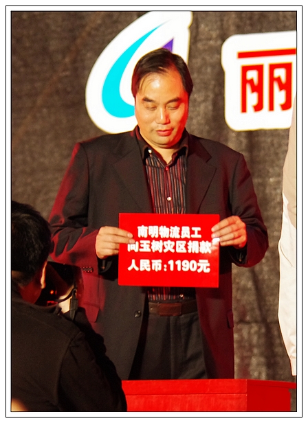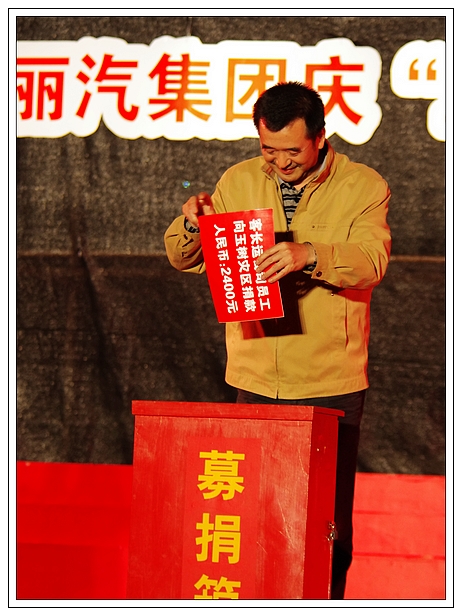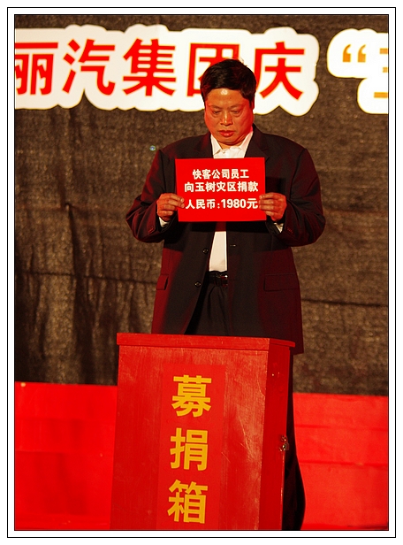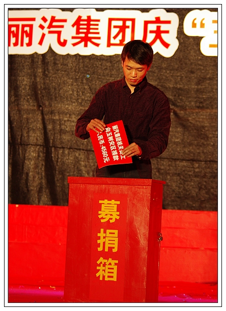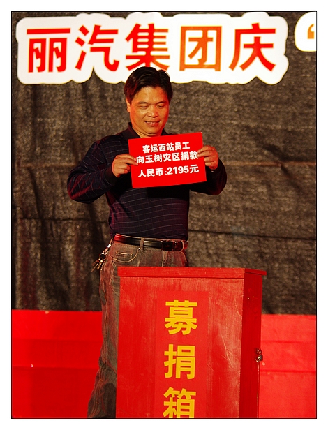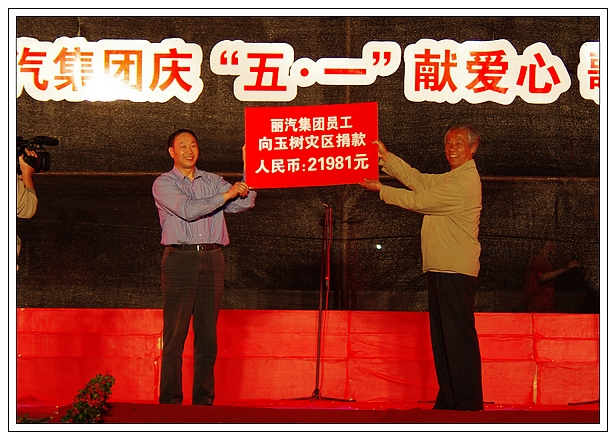 演唱會上,麗汽集團員工為玉樹地震災區(qū)進行了捐款,所募集的21981元善款轉交市慈善總會。