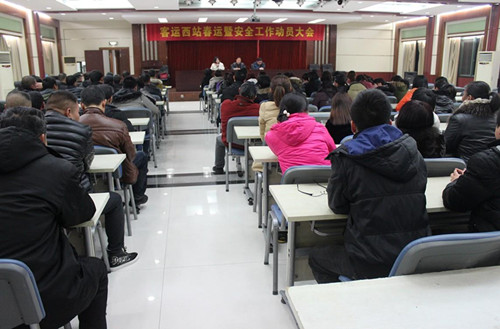 為順利完成2014年春運(yùn)工作,確保各項(xiàng)作業(yè)規(guī)范高效進(jìn)行,1月14日,客運(yùn)西站召集全體員工召開了2014年春運(yùn)動(dòng)員會(huì)議。