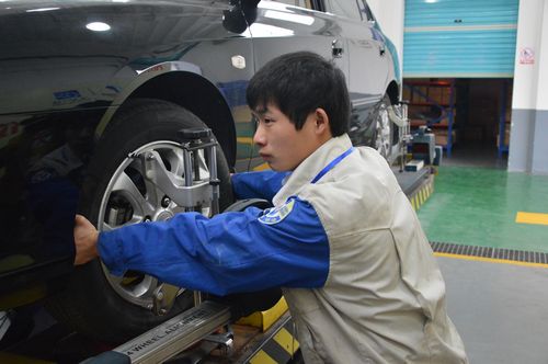 早上8:30分,準(zhǔn)時(shí)開賽,選手們個(gè)個(gè)精神抖擻上陣,準(zhǔn)備一展身手。只見他們熟練展開四輪輪胎磨損情況、四輪動(dòng)平衡及鋼圈輪胎變形情況檢查等一系列操作。臺(tái)上選手們比技能,臺(tái)下其他修理工饒有興致地觀摩學(xué)習(xí)。