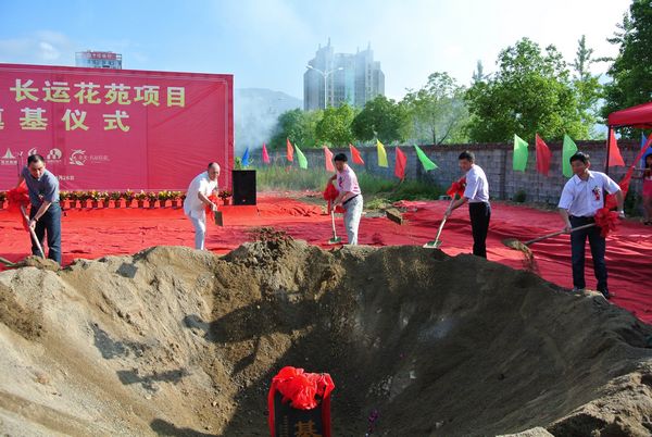 2012年8月26日上午,金龍.長(zhǎng)運(yùn)花苑商住房項(xiàng)目舉行隆重開工奠基儀式。儀式現(xiàn)場(chǎng),地毯披紅,人潮涌動(dòng),彩旗飄飄,音樂雄壯激昂,高空氣球和氣拱門更是增添了會(huì)場(chǎng)的熱烈。