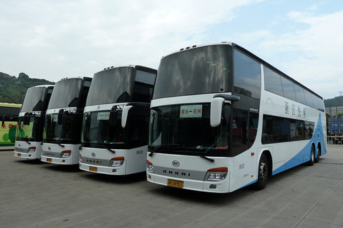 根據(jù)杭州線(xiàn)客流穩(wěn)中有升,尤其是周末及節(jié)假日運(yùn)力不足的情況,8月3日,快客分公司新購(gòu)置的4輛55座安凱客車(chē)上線(xiàn)營(yíng)運(yùn)。新購(gòu)置的55座安凱豪華客車(chē)為雙層豪華大巴,上層40座,下層15座。下層配備3臺(tái)15寸液晶,上層配1臺(tái)17寸彩色液晶,該車(chē)的倒車(chē)監(jiān)視器還帶多動(dòng)畫(huà)面,能手動(dòng)切畫(huà),監(jiān)視上下層車(chē)內(nèi)情況,配備電子巡航系統(tǒng)等。車(chē)身13.7米,比原杭州線(xiàn)所用的37座安凱客車(chē)車(chē)身長(zhǎng)1.7米。