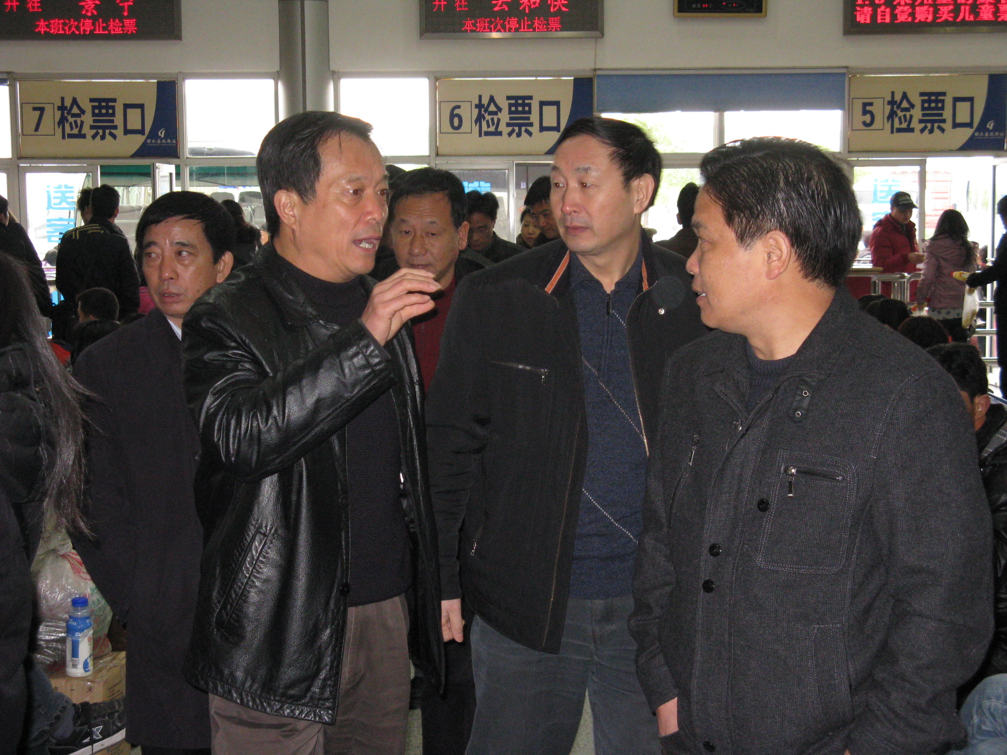 在春運(yùn)運(yùn)力調(diào)配中心,崔建宏局長詳細(xì)了解了集團(tuán)公司在人員值班、運(yùn)力安排、安全生產(chǎn)方面的工作。在進(jìn)站危檢崗位前,崔局長還親切地握住了堅(jiān)守崗位的運(yùn)管和西站保衛(wèi)人員的手,向他們送上了新年的祝福,并交代危檢員,一定要做好工作,確保春運(yùn)期間旅客安全。檢查期間,崔建宏局長要求集團(tuán)公司以及全體運(yùn)輸、站務(wù)工作人員繼續(xù)保持良好的工作狀態(tài),切實(shí)做好安全和服務(wù),讓旅客平安、快捷地回家過年。