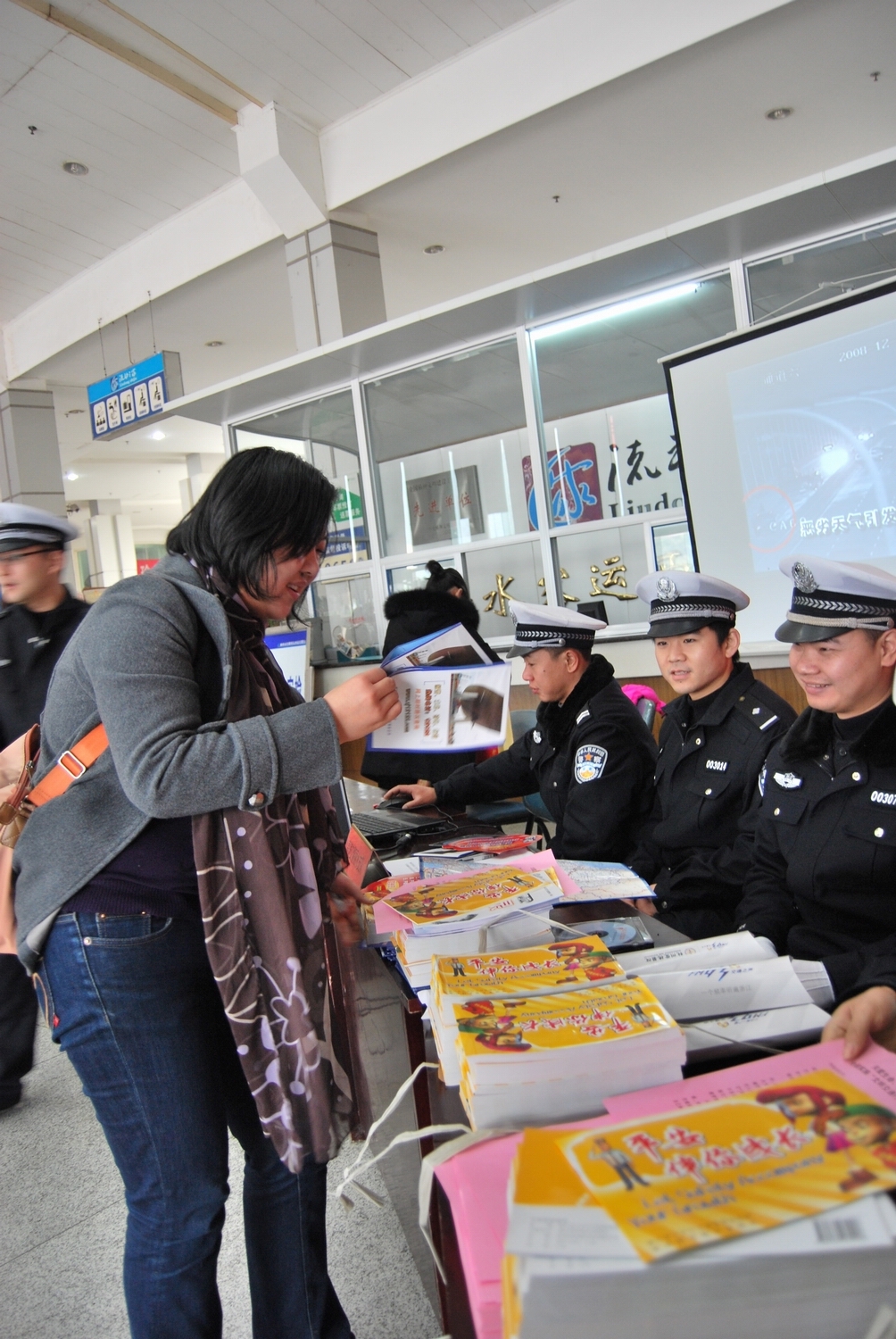 此次活動(dòng)以“關(guān)愛(ài)生命、文明出行”為主題,交警部門準(zhǔn)備了《平安伴你成長(zhǎng)》、《道路交通事故警示錄》、《浙江省高速公路指南》等圖冊(cè)進(jìn)行發(fā)放,市交警隊(duì)的同志特意將《關(guān)愛(ài)生命、文明出行--全國(guó)實(shí)施“文明交通行動(dòng)計(jì)劃”倡議書(shū)》送到候車旅客手中,市運(yùn)管處、交通音樂(lè)頻道、高速交警支隊(duì)還進(jìn)行了春聯(lián)、“?!弊趾推桨卜F(xiàn)場(chǎng)贈(zèng)送,向過(guò)往旅客送出新年祝福。