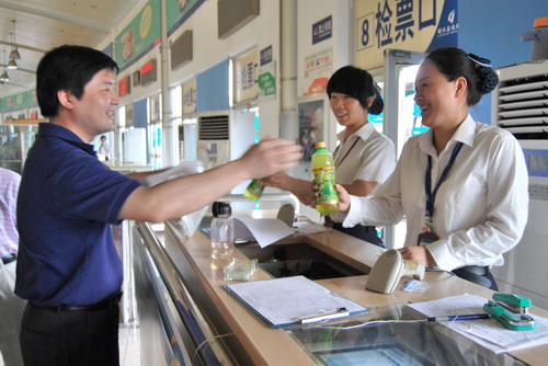 為做好夏季防暑降溫工作,今年集團(tuán)公司除發(fā)放清涼飲料費(fèi)外、還在給全體在崗員工每人發(fā)放了五豐冷食冷飲票。在做好員工的防暑降溫工作的同時(shí),集團(tuán)公司客運(yùn)東、西站候車廳所有空調(diào)全部啟用,客運(yùn)東站還打開吊扇,確保室內(nèi)空氣的流通,為旅客營造了舒適、清涼的候車環(huán)境,"流動(dòng)之家"服務(wù)班還在原來送茶水的基礎(chǔ)上,增添了送涼茶(金銀花茶)服務(wù)項(xiàng)目,受到旅客的好評(píng)。