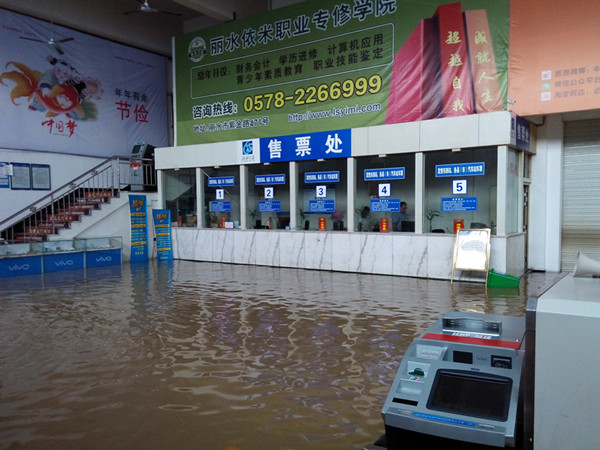8月20日,麗水遭遇50年一遇大洪水,麗水客運(yùn)東站也遭遇了建站以來最大的洪水侵襲,站場(chǎng)、站房一片汪洋。下午4時(shí)許,我們深入東站,用相機(jī)真實(shí)地記錄了當(dāng)時(shí)東站的內(nèi)外情景。