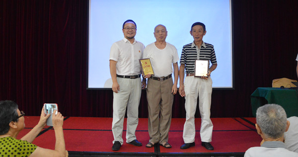 葉茂書(shū)記給徐時(shí)聽(tīng)、曾樹(shù)生兩位黨員送上“光榮入黨五十周年”紀(jì)念牌