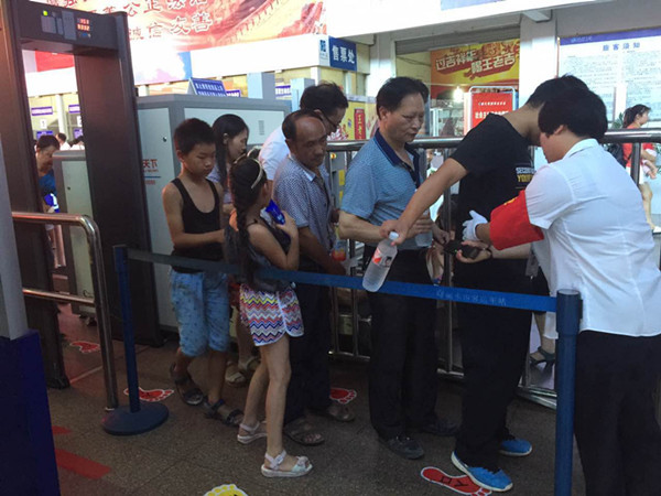 黨員志愿者維持候車大廳秩序