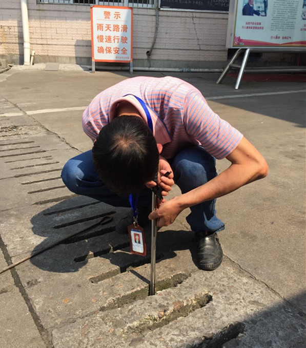 江經(jīng)理蹲下身子,在大媽掉落身份證的地方仔細(xì)地查看,由于陰溝離地面有80公分左右,而且光線較暗,而當(dāng)天的溫度高達(dá)32度,陽光非常強(qiáng)烈、刺眼,從無比強(qiáng)烈的光線下往黑暗處看,無疑是加大了尋找身份證的難度。觀察、尋找了二、三分鐘,還是不見身份證的蹤影,江經(jīng)理突然靈機(jī)一動(dòng)拿出手機(jī),打開手機(jī)里的手電筒往陰溝里照,這招果然有用,沒一會(huì)兒就看到了身份證,在鎖定了身份證的方位后,江經(jīng)理打算把水泥板撬開,可是試了試后就決定放棄了,水泥板實(shí)在太重了。江經(jīng)理又找來一把鉗子和一根鋼筋,可是水泥板上的縫隙實(shí)在太小剛夠鉗子伸進(jìn)去,狹小的縫隙令鉗子的操作空間受到了很大的限制,身份證好幾次被夾起,準(zhǔn)備往上提時(shí)又滑落了下去。20分鐘過去了,太陽底下的江經(jīng)理已經(jīng)是滿頭大汗。期間有路過的駕駛員勸江經(jīng)理不要撿了,讓旅客自己再去補(bǔ)辦一張就是了??墒墙?jīng)理?yè)u搖頭,他還是常說的那句話“旅客的事情無小事,我們要盡自己最大的努力,服務(wù)好每一位旅客。”