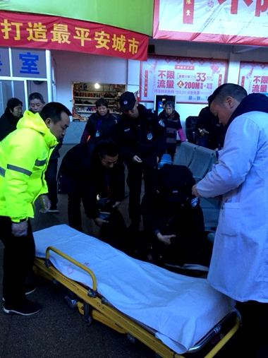 業(yè)務站站長陳樂觀和值班科長余林峰也隨即趕到了現(xiàn)場,在等待救護車的間隙,陳樂觀怕衣冠不整的旅客肚子裸露著直接貼在冰冷的地上會凍著,他蹲在旅客身邊將他的衣服整了整。余林峰則迅速打開綠色通道,并到東門迎接救護人員和警察的到來。