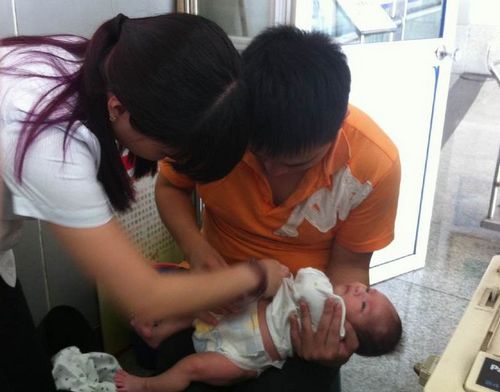 恰在這時(shí),一名年輕的“奶爸”旅客左手拉著一個(gè)行李箱,背后背著一個(gè)大包,右手還抱著一個(gè)尚在襁褓中嚶嚶哭泣的小嬰兒,滿(mǎn)頭大汗的來(lái)到服務(wù)臺(tái)前,小寶寶可能肚子餓了,一直在哭泣,小寶寶的媽媽又沒(méi)有隨行,只有爸爸一個(gè)人對(duì)付小家伙,實(shí)在是沒(méi)轍了,只得到服務(wù)臺(tái)求助。